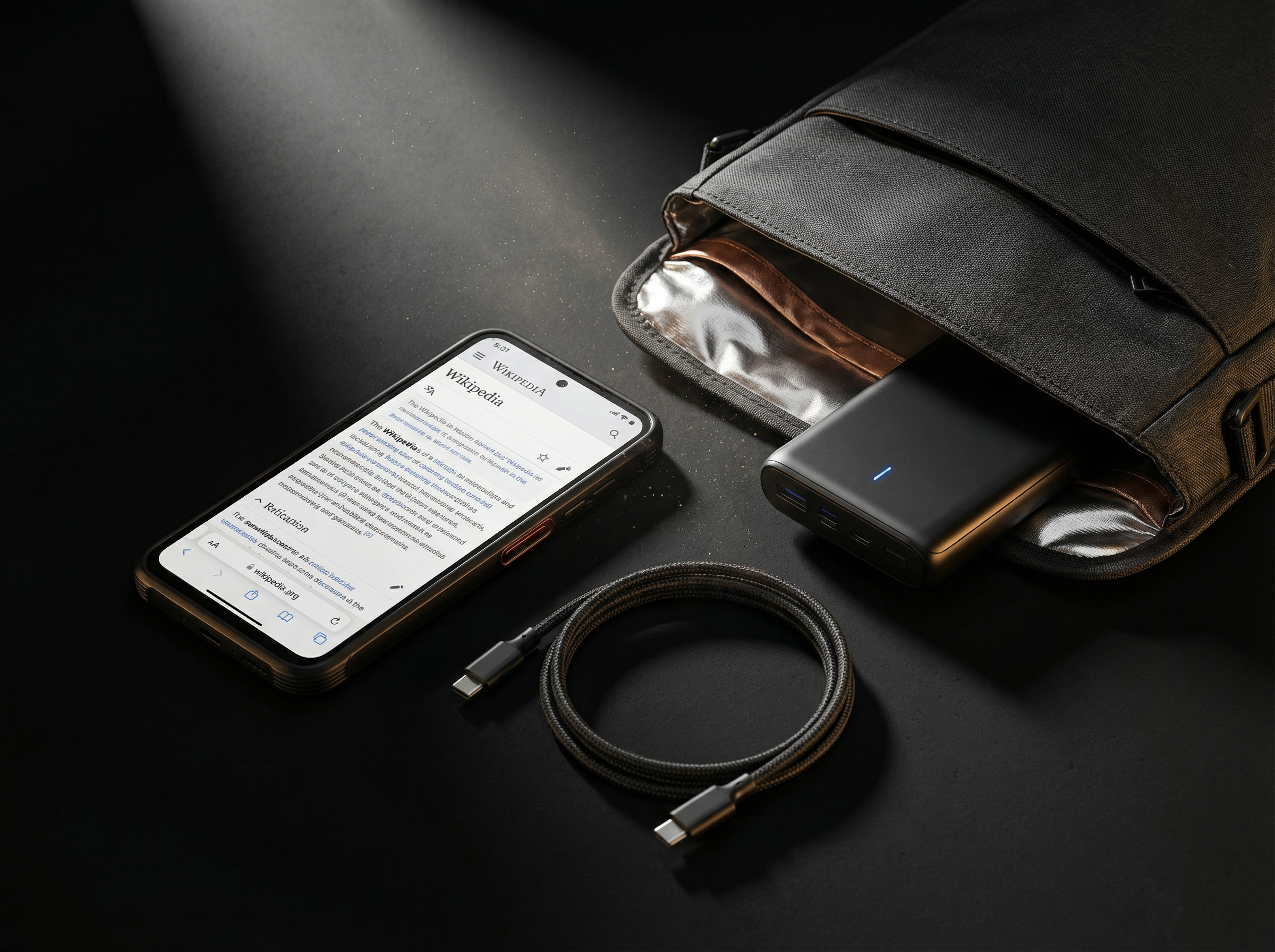 20,000mAh USB-C. Charges the phone 4-5 times over. Because when the power goes out, outlets are the first thing you lose.